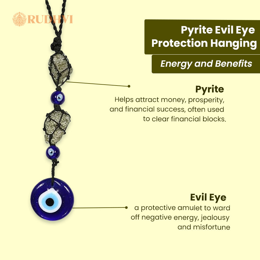 Pyrite Evil Eye Hanging for Home & Office – Nazar Protection & Wealth Attraction | Rudhvi™