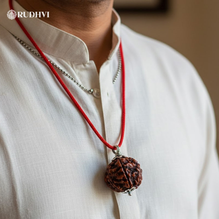 Wear the 5 Mukhi Rudraksha as a pendant on the neck, preferably in a red thread