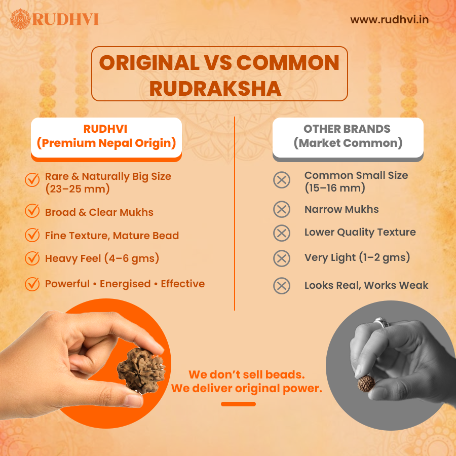 7 Mukhi Rudraksha is associated with Goddess Mahalakshmi and is traditionally believed to attract prosperity, remove financial obstacles and support stability.