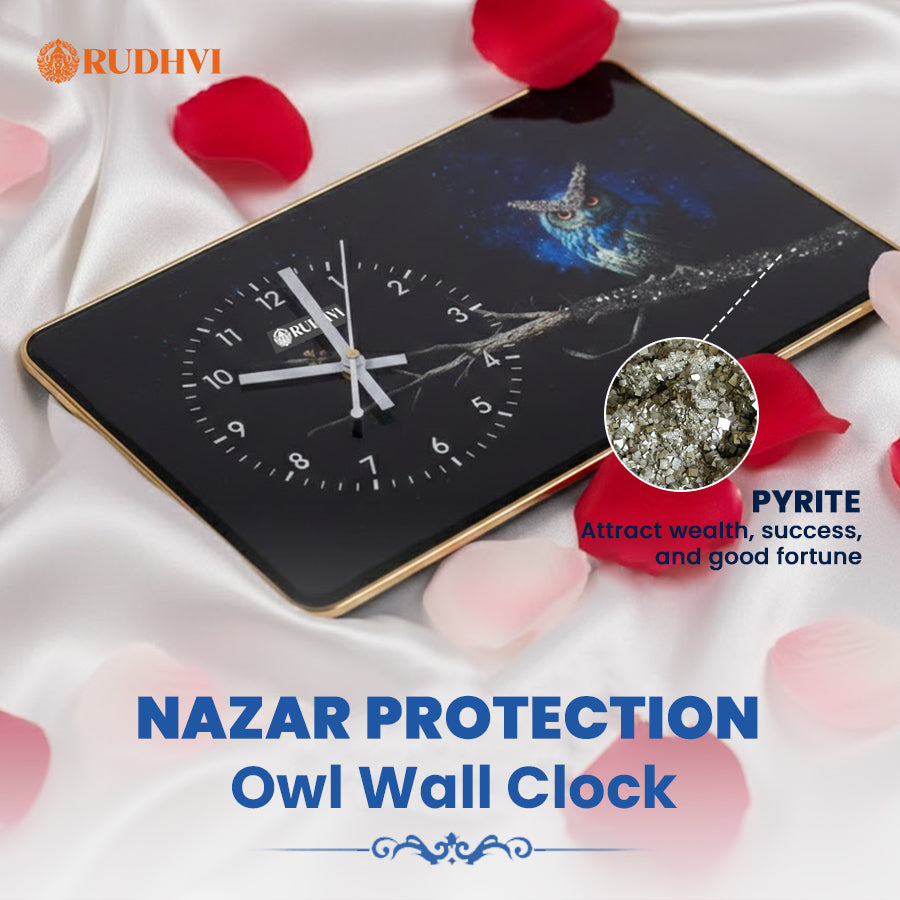 Rudhvi™ Nazar Protection Owl Wall Clock is designed to bring both aesthetic elegance and spiritual protection into your home or office.