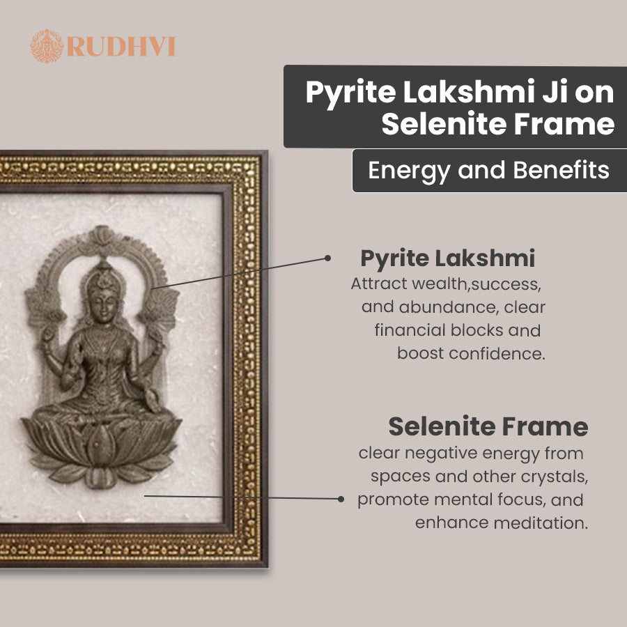 Pyrite Lakshmi Ji idol on selenite frame for wealth and abundance