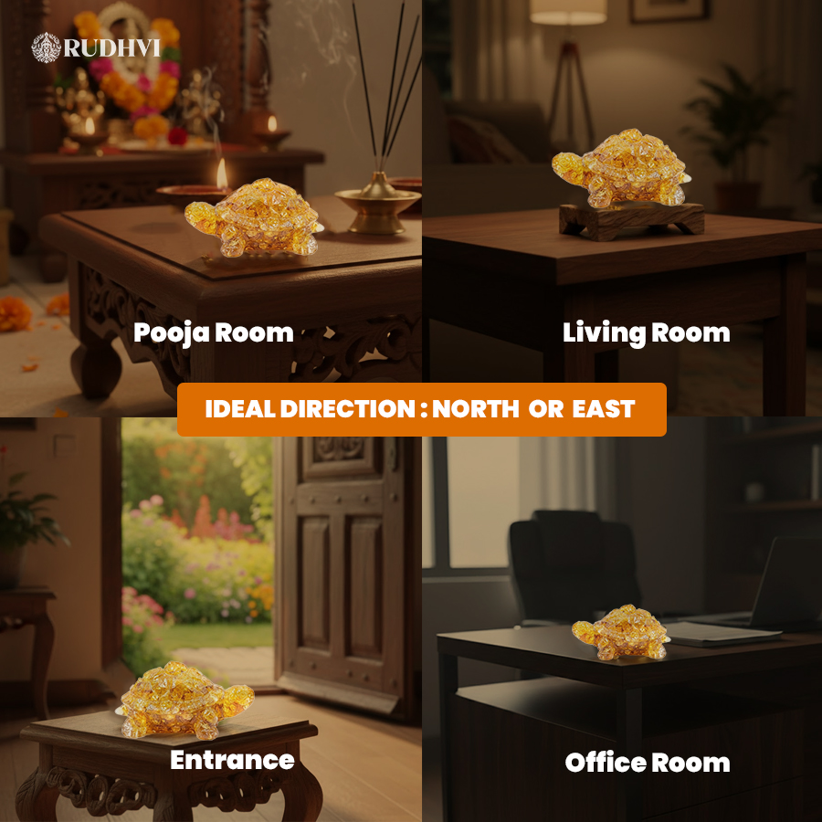 Vastu Yellow Citrine Tortoise (Kachhua) for Wealth, Stability & Protection | Rudhvi